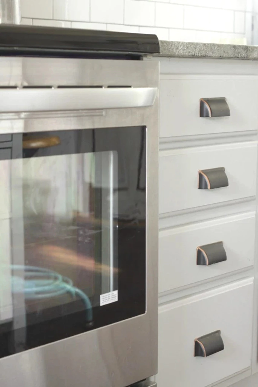 All links open in a new tab. The beautiful set of photos in the white kitchen come to us from Cassie Bustamante! The photos of the matching Venetian bronze hardware comes from one of our business accounts and a super talent at Momzilla’s Unique Boutique!! The great wood dresser and bronze cup pulls comes to us from Laura at The Artisan Market of Minnesota! Vintage Transformation Studio shared the beautiful two tone dresser with these Venetian bronze bin pulls! Amini Design Ashburn shared the lovely white pair of cabinets with these rectangular cup pulls!
