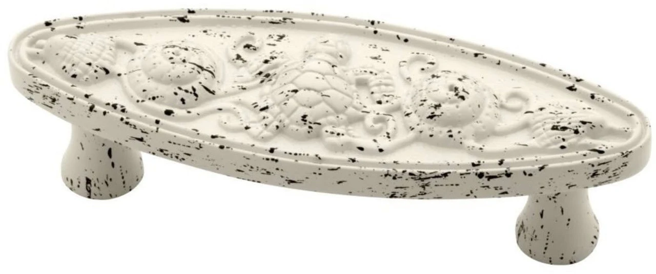 Oval pull 3″ or 76mm C-C vintage distressed antique white. The figures on the pull are a raised collection of sea creatures. Matches all other color code “254” or antique white.