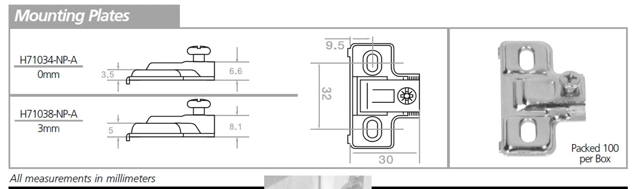 5/8″ Overlay with H71039-NP-A Mounting Plate, 1/2″ Overlay with H71040-NP-A Mounting Plate