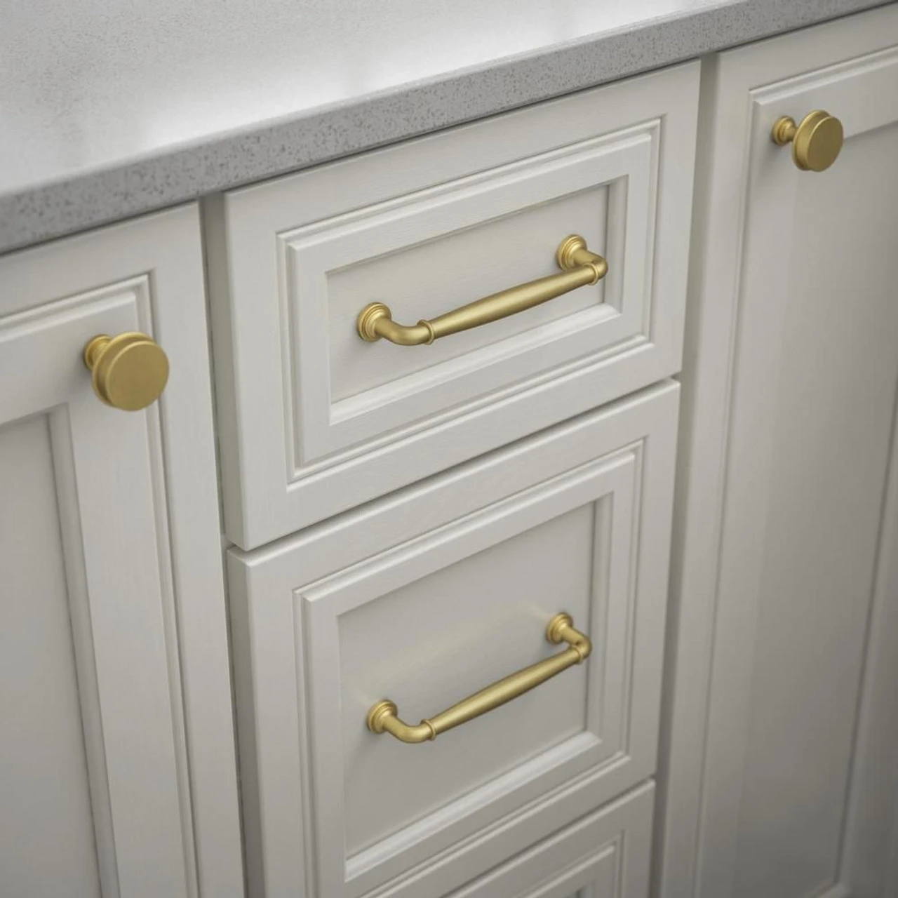 Bayview Brass Collection. Nice substantial cabinet pull with a style that works Uptown and Downtown . Comes in five different lengths. Perfect for modern looking kitchens.
