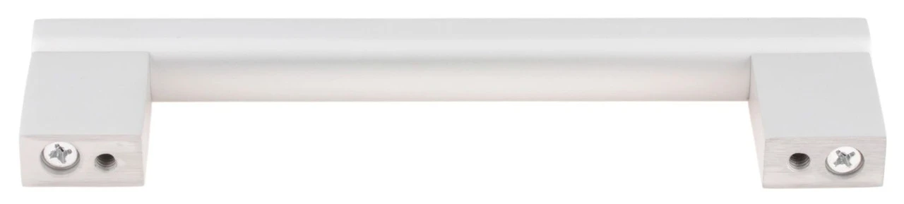 This aluminum pull is perfect for a modern kitchen. The pull is a bar mounted on two rectangle shaped stems. Expressions Reserve Collection
