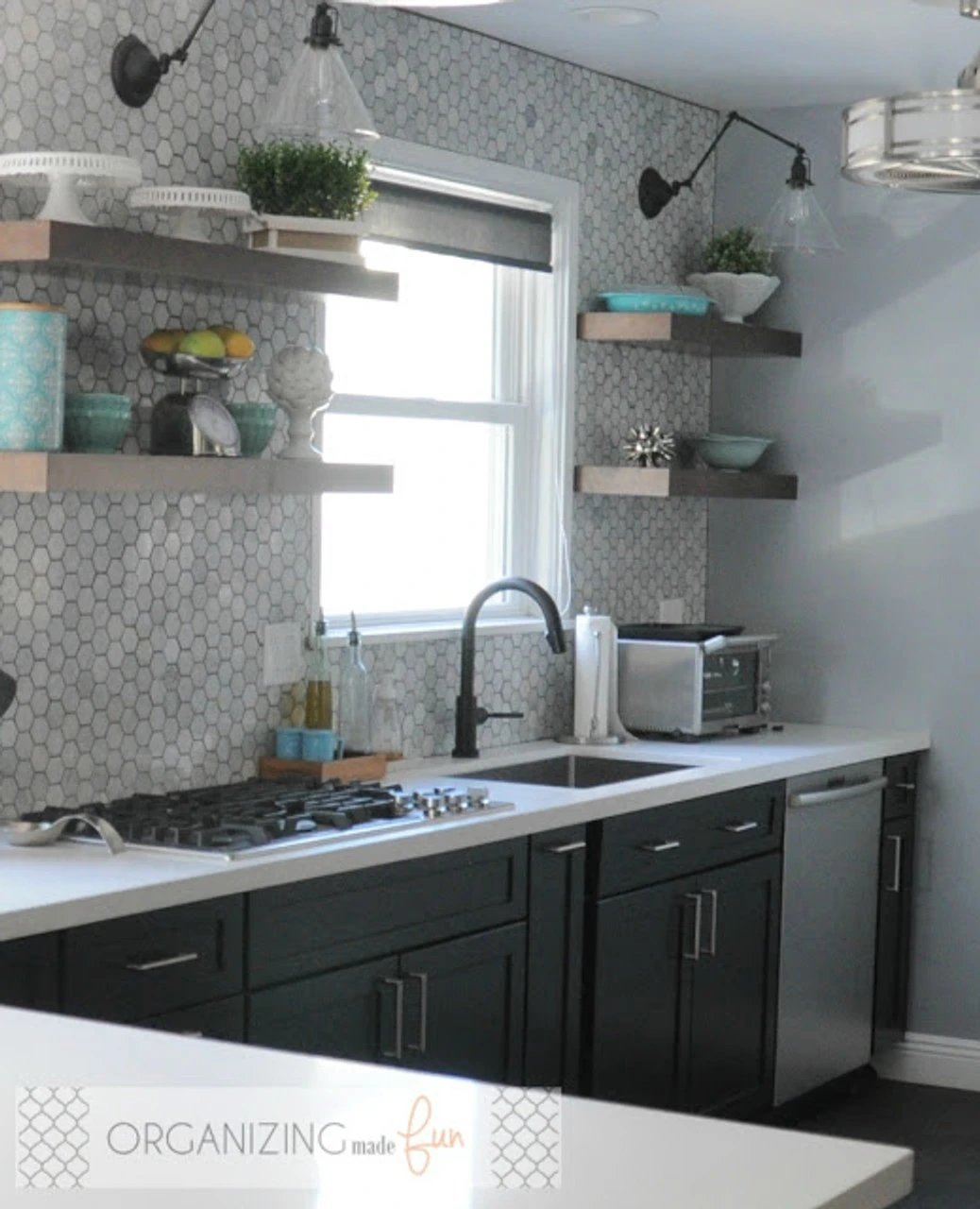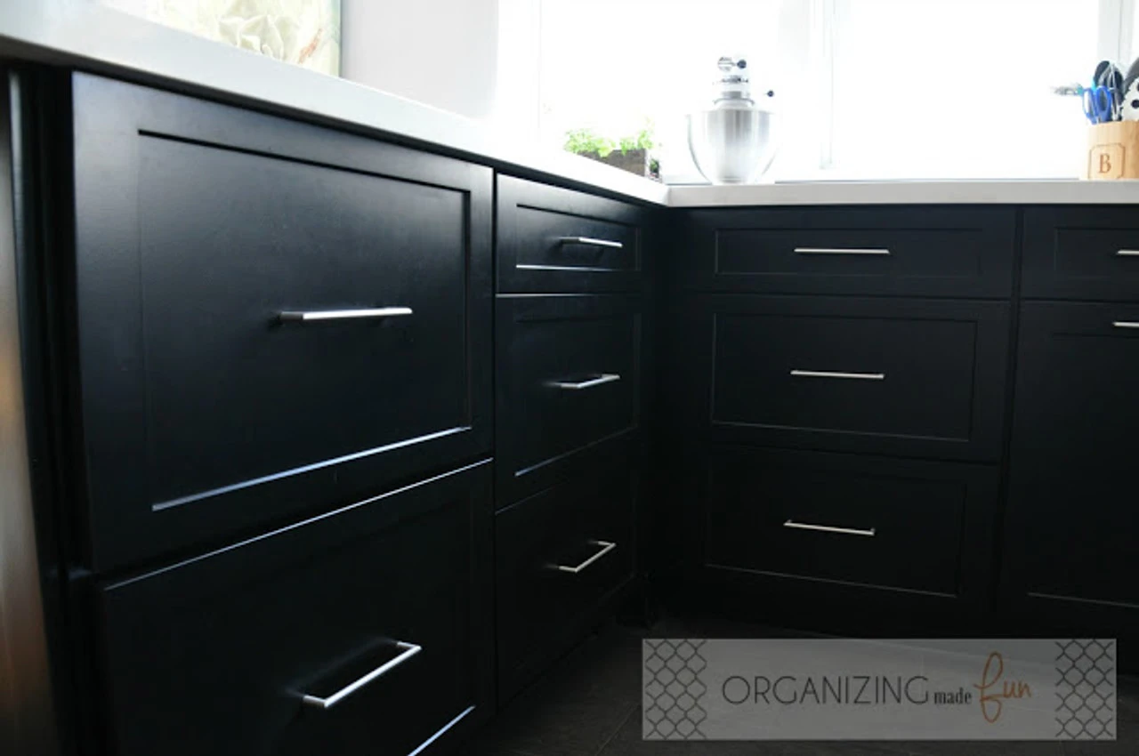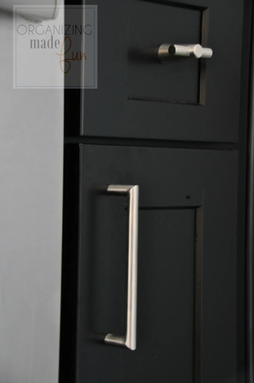 Super Sale! We got a heck of a deal on this Liberty Hardware Belmont Collection Pull and we are passing it on to you! This is high quality Liberty Hardware! The additional images show this pull with it’s matching brothers and sisters in a beautiful black and stainless steel kitchen at the popular blog Organizing Made Fun! Straight line pull in stainless steel for the modern look and match of kitchen equipment.