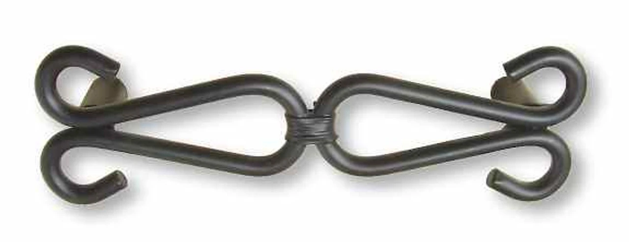 This flat black double hook pull gives the appearance of two metal hooks bound together by a smithy clamp.
