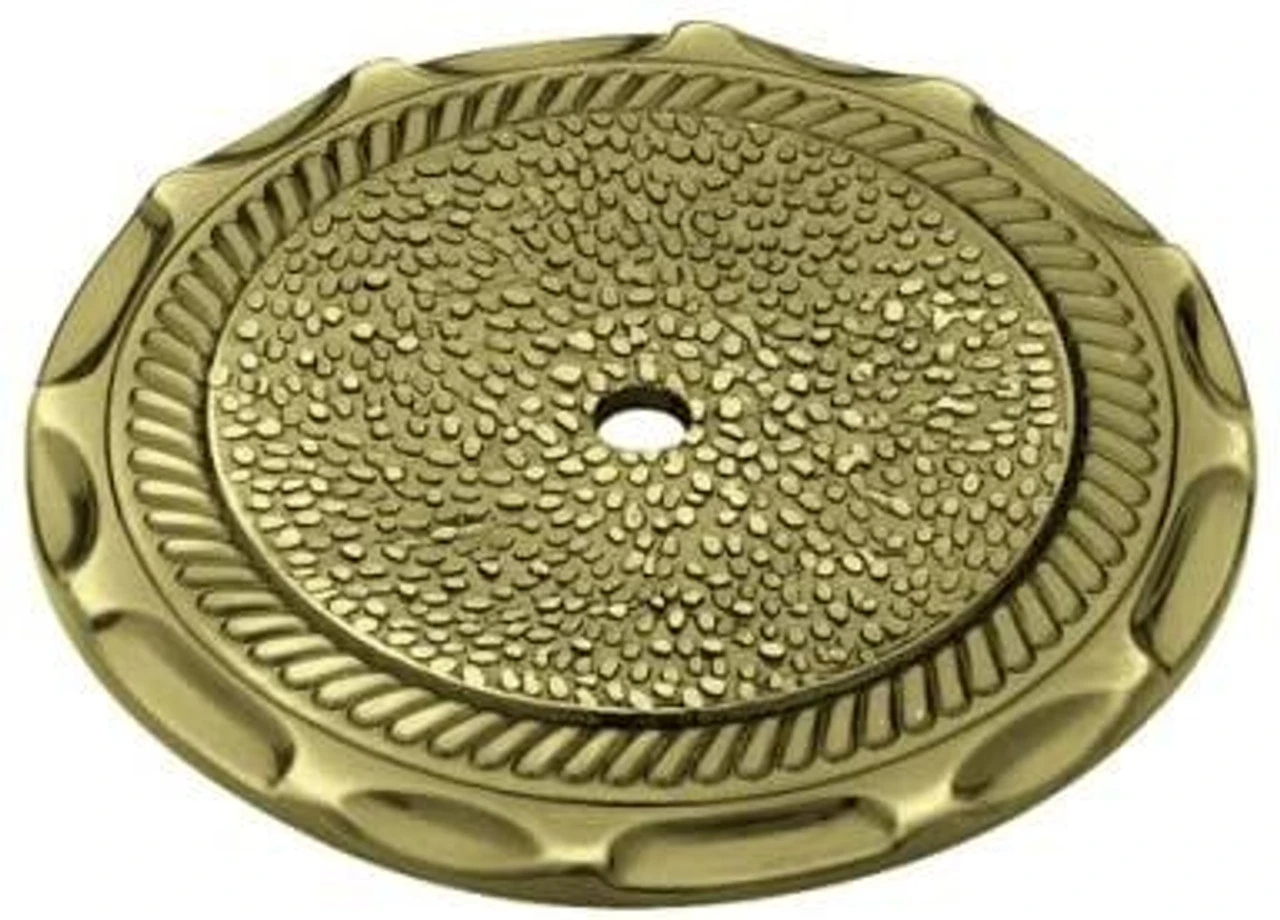 This antique brass backplate from Liberty Hardware will match any of the Liberty antique brass knobs and add great protection to high use areas with it’s 2 1/2″ diameter. Not to mention the beautiful detail it can add! Liberty Hardware