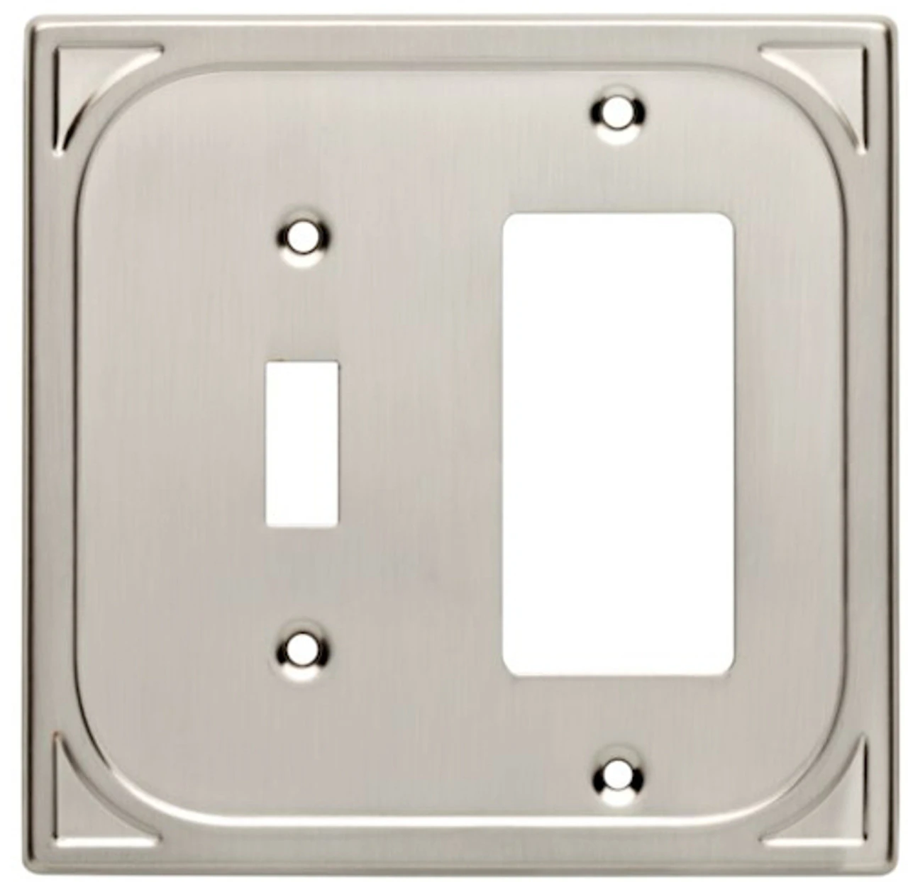 A sleek looking satin nickel wall plate. Features a single switch and a decorator and is from the Cambray Collection.