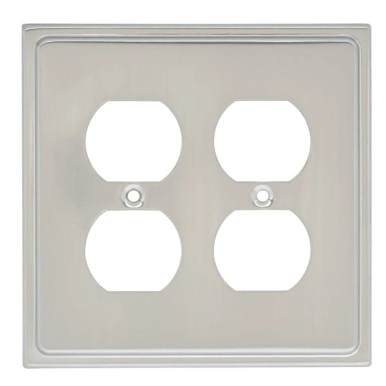 Limited Stock! Country Fair double duplex switch plate in satin nickel.