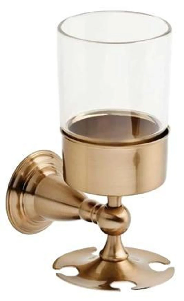 The 75056-CZ from Delta’s Victorian Style Collection features a clear tumbler set in stemmed cup with slots for toothbrushes in Champagne Bronze Finish.