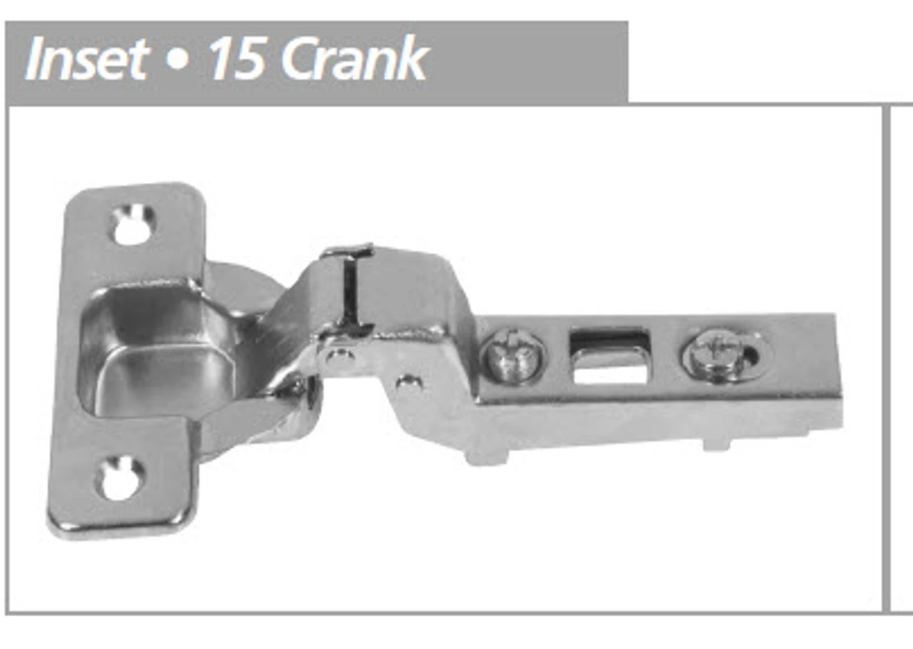 35mm Cup 110 Degree Concealed Hinge, Inset 15 Crank. You are purchasing one hinge only. Order appropriate mounting plate separately. Click on inset picture for details.