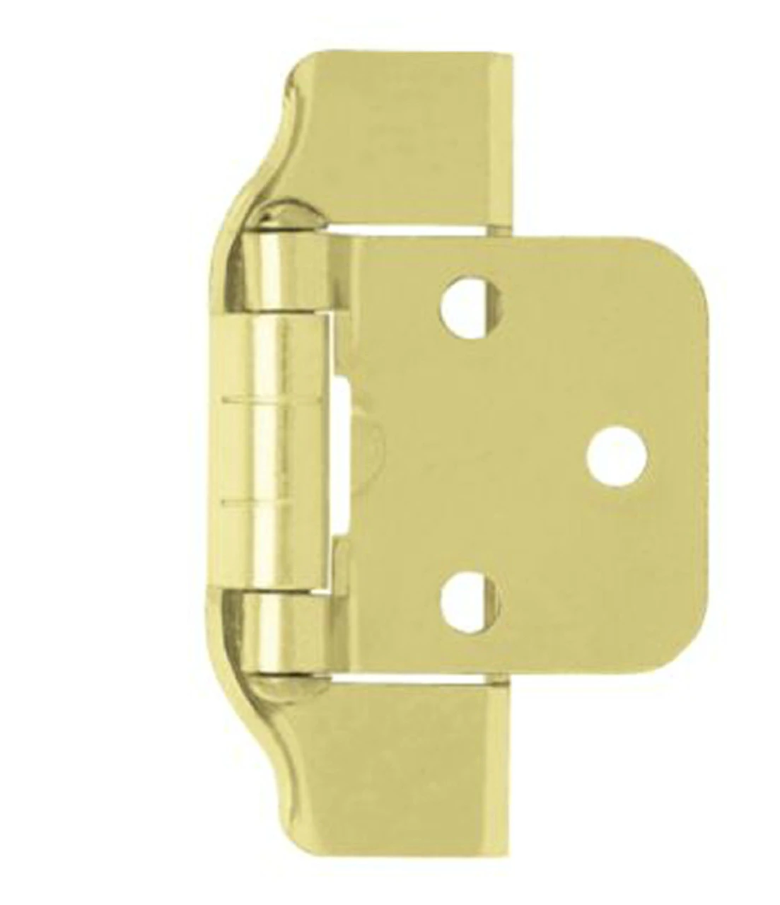 Pair 1/2″ Overlay Semi-Wrap, Self Closing, Brass Plated Hinges.