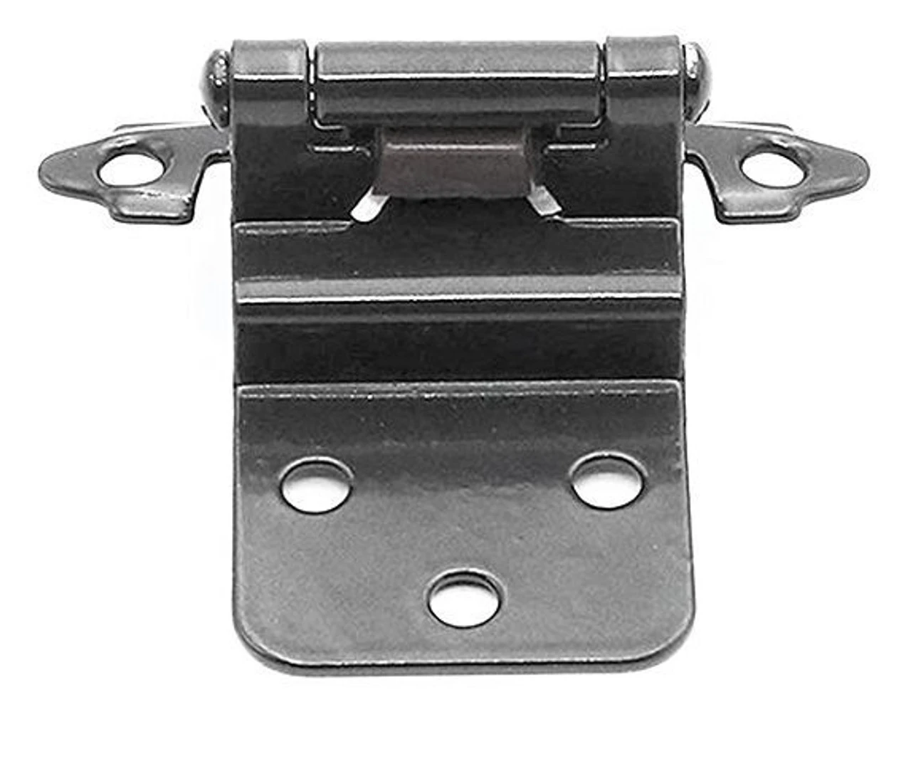 Black Nickel Pair 3/8″ inset/offset self closing hinge for cabinets. Sold as a pair. Comes with screws and bumpersMatches Black Stainless Steel appliances pretty well.