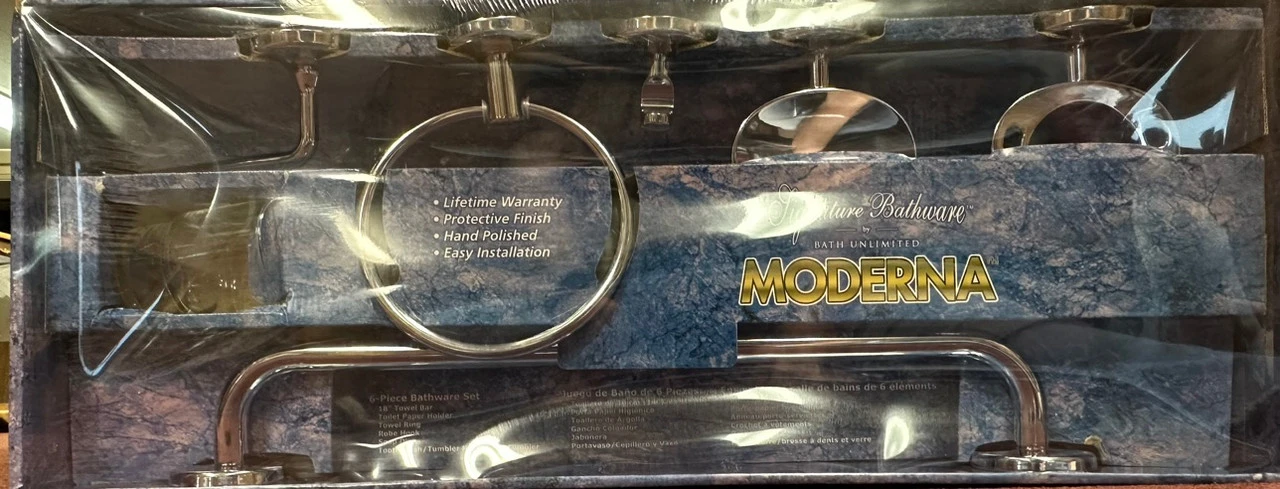 18″ Towel Bar, Toilet Paper Holder, Towel Ring, Robe Hook, Soap Dish, Toothbrush/Tumbler Holder Tumbler Included