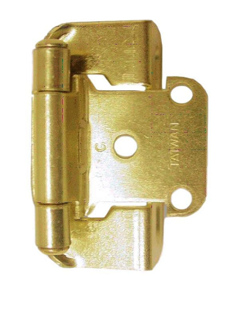 Pair (2) of hinges. A popular partial wraparound hinge because it is attractive, well built, and will last a lifetime. Self Closing 1/2″ overlay.