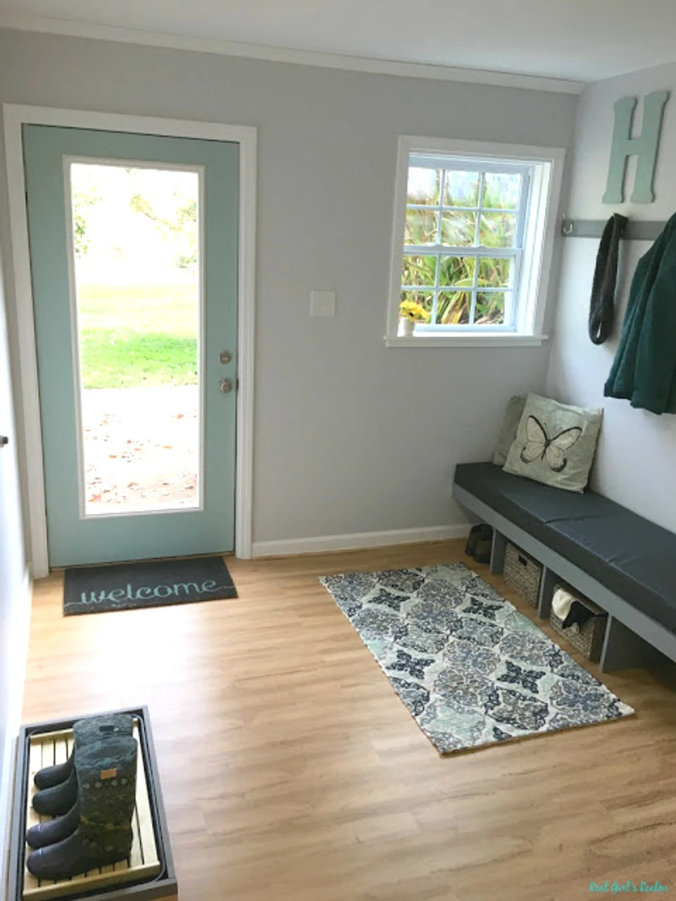 All links open in a new tab. The nice photos from the basement mudroom update come to us from the popular DIY and home blog The Real Girl’s Realm.